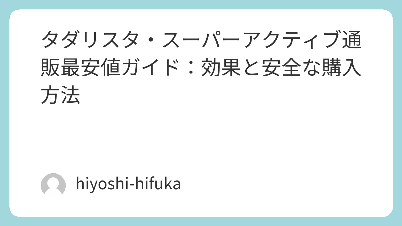 タダリスタ・スーパーアクティブ通販最安値ガイド:効果と安全な購入方法