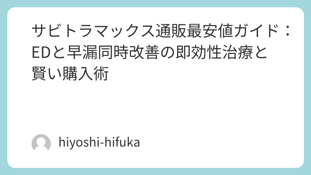 男性の性的健康は、ED(勃起不全)と早漏という二重の悩みで影を落とすことがあります。これらを同時に解決するサビトラマックスは、レビトラとプリリジーのジェネリックとして即効性と持続性で注目されています。日本国内では未承認ながら、通販で最安値入手が可能で、プライバシーを守りながら経済的に活用できます。この記事では、サビトラマックスの特徴から効果、副作用、通販最安値の賢い購入方法までを詳しく解説します。読みやすく整理した内容で、あなたの悩みをサポート。パートナーとの自然で満足度の高い時間を、自信を持って実現しましょう。